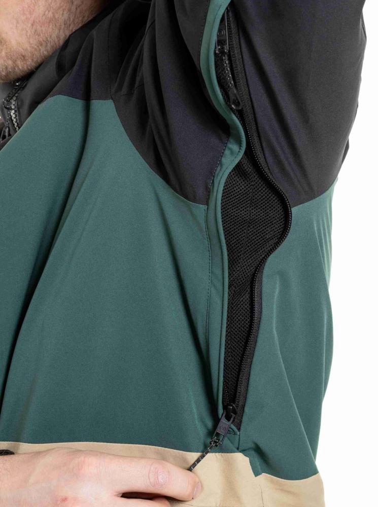 Co se týče kapes, bunda Manifold je také velmi praktická. Má vnější zipové kapsy, náprsní zipovou kapsu a vnitřní zipové kapsy, takže ať už potřebuješ uložit telefon, peněženku nebo klíče, máš kam. Větrání v podpaží je zase tu od toho, když potřebuješ trochu "vyvětrat" po náročným sjezdu. Kapuci i spodní část bundy si můžeš stáhnout, což je skvělé, když se počasí zhorší. A co je super, je snow catcher. To je ten sněhový elastický pás se zapínáním na druky a poutky pro uchycení ke kalhotám. Přijde vhod, když se zrovna vysekáš, tak ti sníh neproleze pod bundu. Dalším nezbytnou vychytávkou jsou například vnitřní elastické návleky s otvorem pro palec a stahování rukávů pomocí suchého zipu. Tak co, jdeš do toho?
